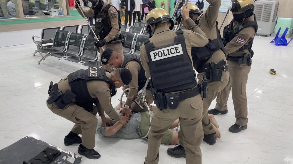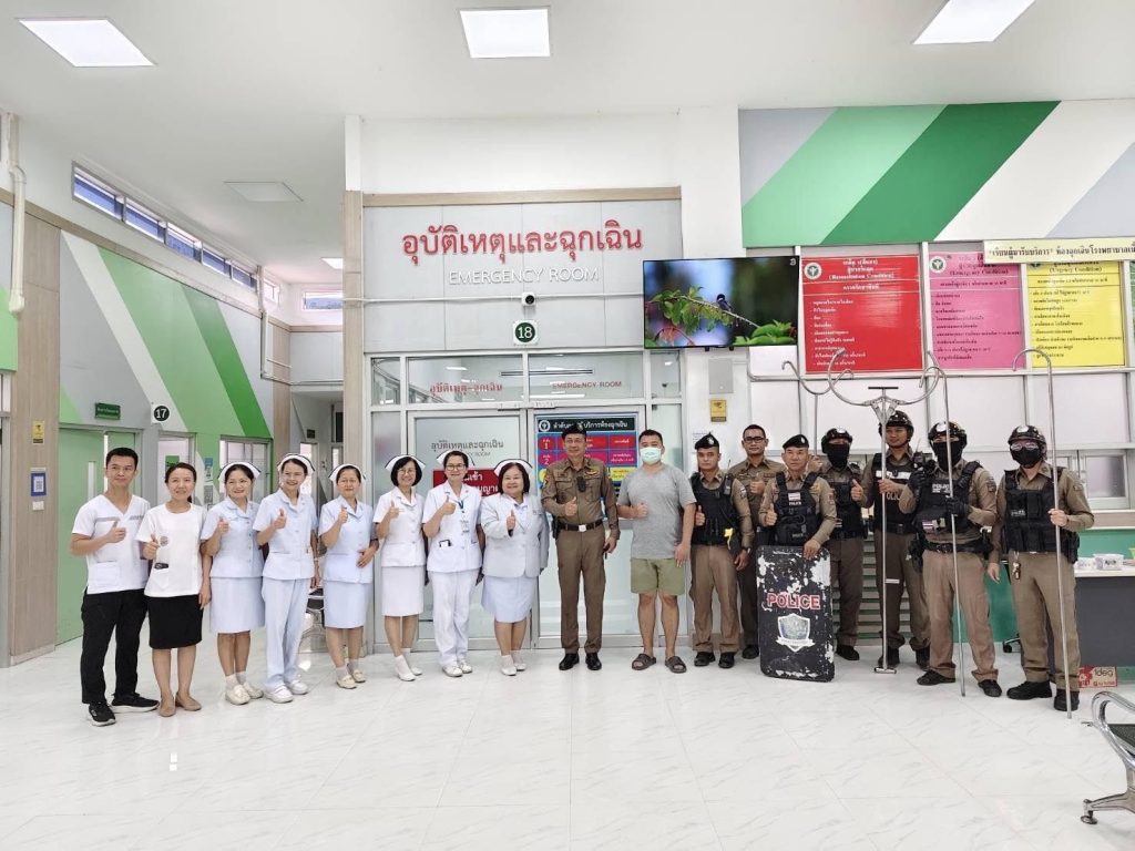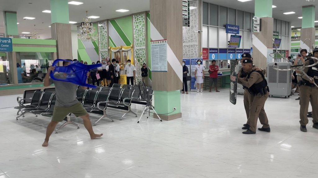 ซ้อมแผนเผชิญเหตุกรณีคนคลุ้มคลั่ง 1 เมษายน 2568 โดย admin / ข่าวกิจกรรม #ซ้อมแผนเผชิญเหตุ วันนี้ (1 เม.ย.68) เวลา 09.00 น. พ.ต.ท.วิศรุต รัตนบำรุง สวป.สภ.เขื่องใน ร่วมกับ โรงพยาบาลเขื่องใน ซักซ้อมแผนเผชิญเหตุบุคคลคลุ้มคลั่ง ที่ส่งตัวไปรักษาตัวในโรงพยาบาล เกิดอาการคลุ้มคลั่งก่อเหตุความไม่สงบในโรงพยาบาล โดยได้ปฏิบัติตามหลักยุทธวิธี (SOP) ระงับเหตุกรณีคนคลุ้มคลั่ง พร้อมให้ความรู้กับประชาชนบริเวณโดยรอบ ที่ดูการซักซ้อมแผนเผชิญเหตุว่าควรปฏิบัติตนอย่างไรเมื่อเกิดเหตุ ผลการปฏิบัติเป็นไปด้วยความเรียบร้อย https://www.facebook.com/share/p/18znKrskVH/ Facebook iconFacebookTwitter iconTwitterLINE iconLine