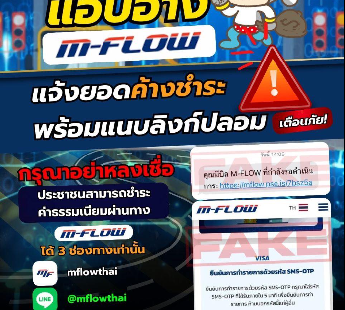 เตือนภัย กลับมาอีกแล้ว!!มิจฉาชีพแอบอ้าง M-Flow ปลอม