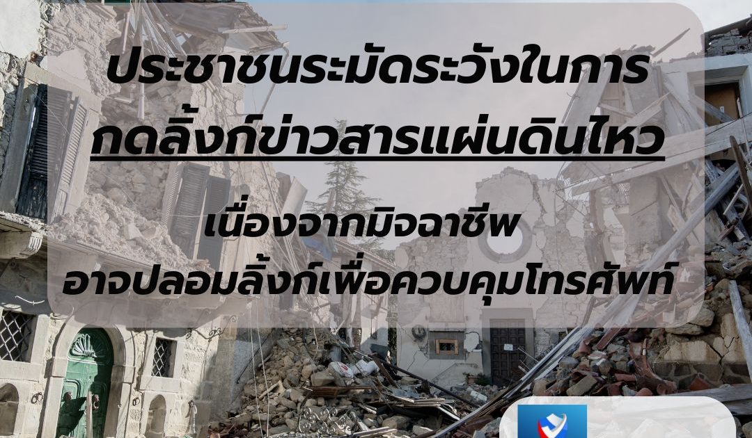 ระวัง! มิจฉาชีพอาศัยจังหวะเหตุการณ์แผ่นดินไหว ส่งลิงก์ข่าวปลอม หลอกติดตั้งแอปควบคุมโทรศัพท์มือถือ