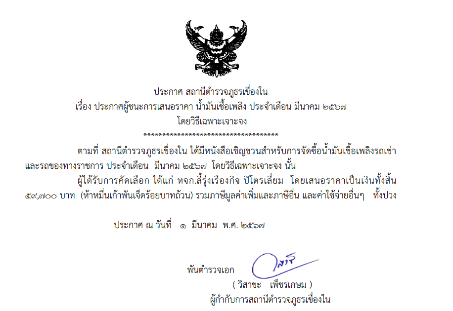 ประกาศผลผู้ชนะ น้ำมัน เดือน มีนาคม 67 4 มีนาคม 2567 โดย admin / ข่าวจัดซื้อจัดจ้าง Facebook iconFacebookTwitter iconTwitterLINE iconLine