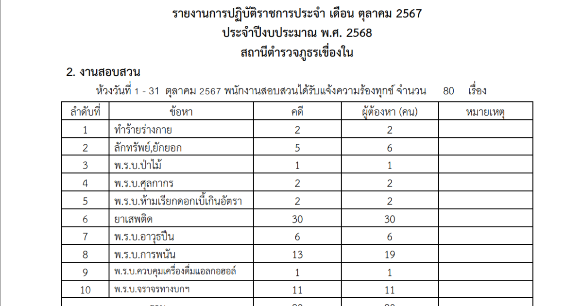 ผลการปฏิบัติงานสอบสวนประจำเดือน ตุลาคม 2567 31 ตุลาคม 2567 โดย admin / ผลงานของแต่ละสายงาน,งานสอบสวน รายงานการปฏิบัติราชการประจำเดือน ตุลาคม 2567 Facebook iconFacebookTwitter iconTwitterLINE iconLine