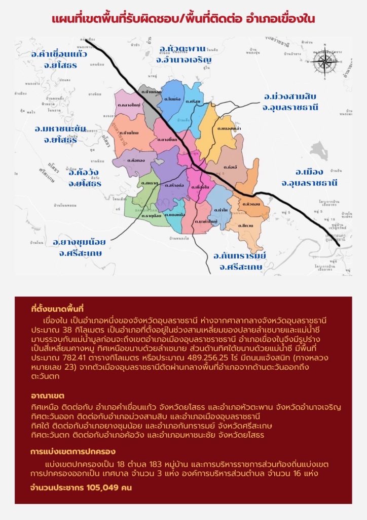 3.อำเภอเขื่องในแบ่งเขตการปกครองย่อยออกเป็น 18 ตำบล 183 หมู่บ้าน ได้แก่