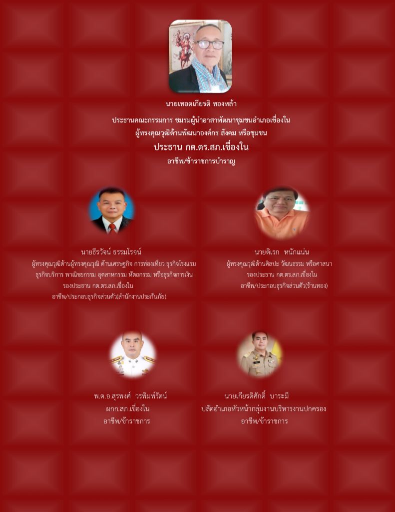 13 ก.พ.68 เวลา 14.00 น.พ.ต.อ.วิสาขะ เพ็ชรเกษม ผกก.สภ.เขื่องในพ.ต.ท.ศรายุธ ใจกำแหง รอง ผกก.ป.ฯ พ.ต.ท.เดชวุฒิ คงสิม รอง ผกก.(สอบสวน) ฯพ.ต.ท.บวรศักดิ์ คำรังษี รอง ผกก.สส.ฯ พ.ต.ท.วิศรุต รัตนบำรุง สวป.ฯ พ.ต.ต.สมบัติ แววศรี สวป.(ชส.)ฯ พร้อมด้วย คณะกรรมการ กต.ตร.สภ.เขื่องใน ที่ได้รับการแต่งตั้ง ร่วมประชุม กต.ตร.สภ.เขื่องใน ครั้งที่ 1/2568 ณ ห้องประชุม ศปก.ชั้น 2 สภ.เขื่องใน – ปฐมนิเทศ กต.ตร.ฯ – เลือกประธาน กต.ตร.ฯ – เลือกรองประธาน กต.ตร.ฯ